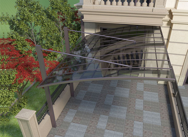 頂棚采用進(jìn)口聚碳酸酯板,抗沖擊是玻璃的數(shù)百倍,有效防止高空墜物
