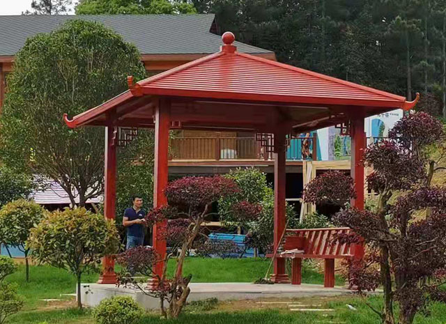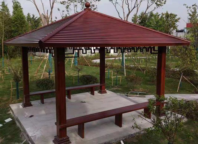 涼亭,傳統(tǒng)結(jié)構(gòu)單體建筑之一。因為造型輕巧,選材不拘,布設(shè)靈活而被廣泛應(yīng)用在園林建筑之中。是人們憑借一定材料建造出來的,而材料的特性,也必然會對建筑的造型風(fēng)格產(chǎn)生影響。所以,涼亭的造型藝術(shù),也在一定程度上取決于所選用的材料。由于各種材料性能的差異,因此,不同材料建造的涼亭,就各自帶有非常顯著的不同特色。