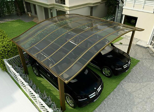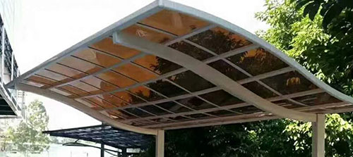 頂棚采用進口聚碳酸酯板,抗沖擊比玻璃強,有效防止高空墜物