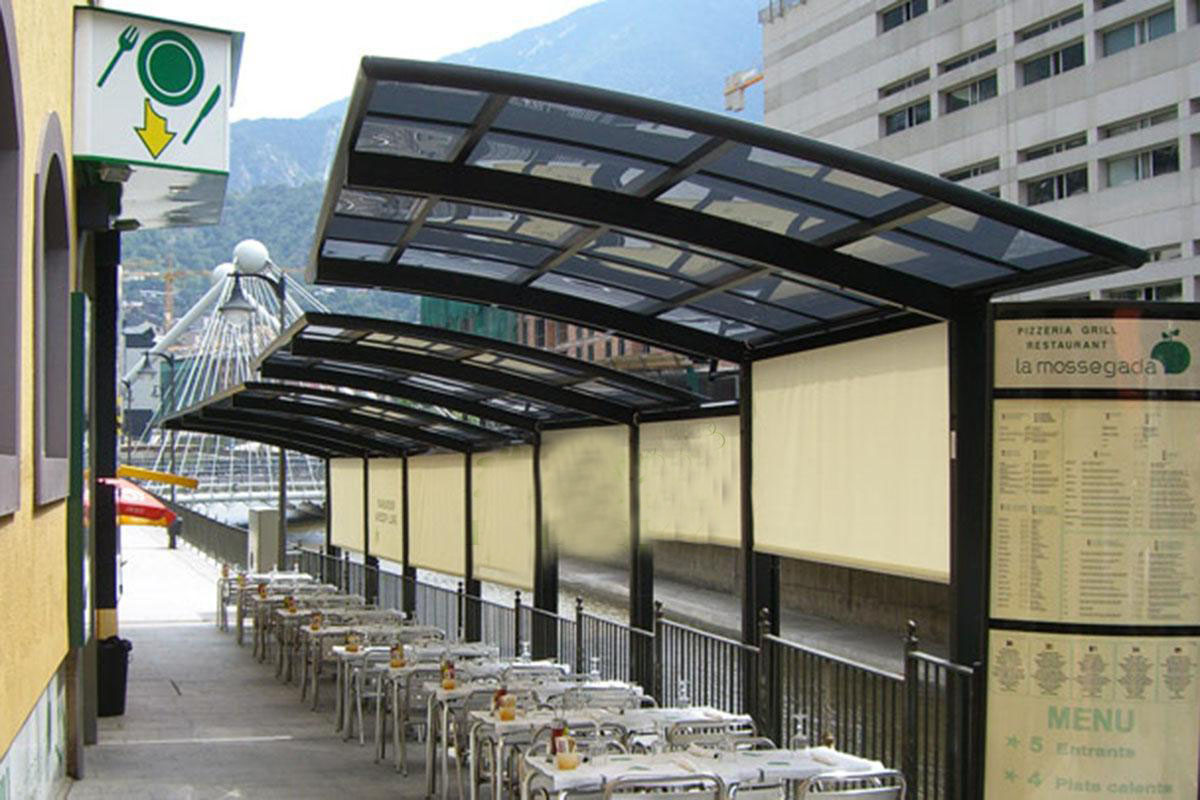 劣勢:鋼管材料骨架,安全強(qiáng)度低。頂部彩鋼瓦經(jīng)受不住風(fēng)力影響,容易發(fā)生形變造成安全隱患。使用壽命短,美觀度差,后期維護(hù)成本高和投入精力大。