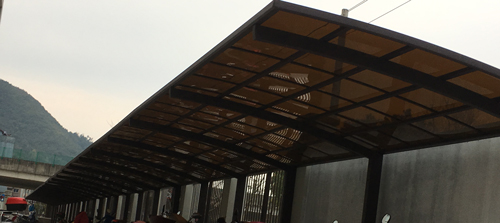 頂棚采用進口聚碳酸酯板,抗沖擊比玻璃強,有效防止高空墜物