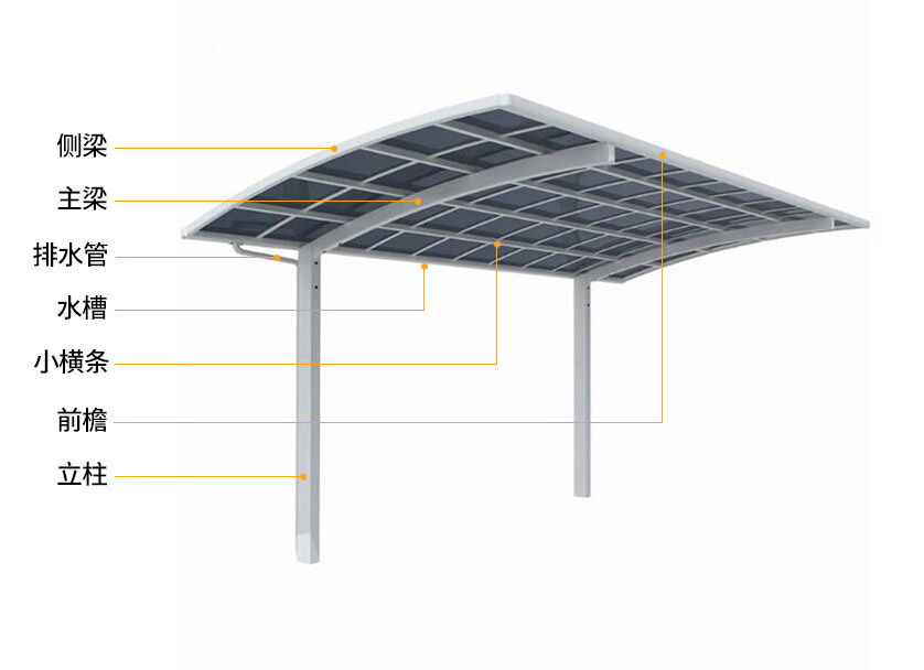 款式選擇:?jiǎn)芜吺杰嚺铩⒑媳杰嚺?、斜拉式車棚、歐式S型車棚