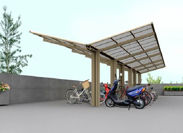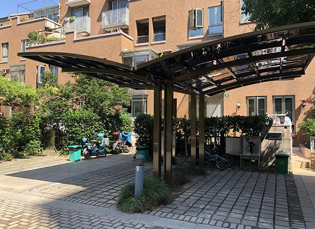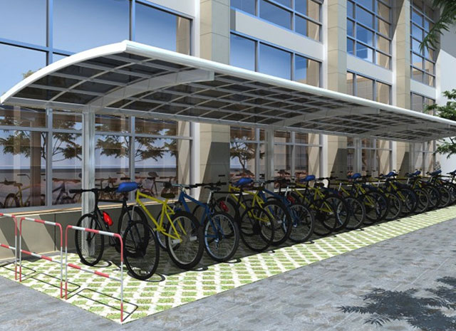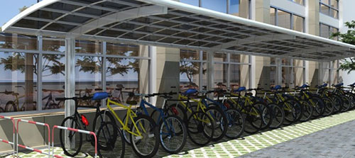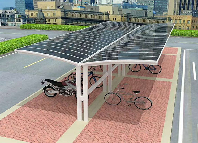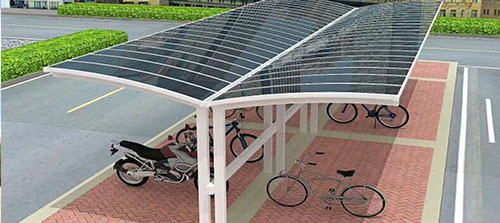 鋁合金自行車車棚融合歐式浪漫優(yōu)美弧度,簡約時尚的設計風格,給您舒服自在的精致享受