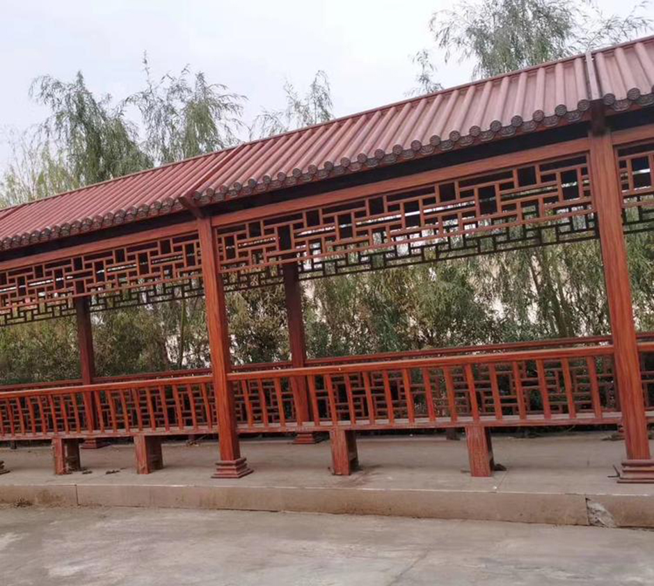 涼亭長(zhǎng)廊系列是演繹自然與生活的交融,創(chuàng)新的鋁合金框架加以表面木紋處理完美承襲生活所追求自然的經(jīng)典魅力,而它的設(shè)計(jì)靈魂正是根源于當(dāng)下所倡導(dǎo)的自然環(huán)保。此外,采用完美的建筑材料——水印氟碳木紋鋁型材,可在視覺(jué)上營(yíng)造出與自然對(duì)稱和諧之美,并具有耐候性、耐磨損、耐腐蝕性,硬度高、不易變形、仿木真圖案不褪色、不脫落等優(yōu)越特點(diǎn),呈現(xiàn)出自然與環(huán)保的平衡布局,成為經(jīng)久不衰的典雅風(fēng)格化身。