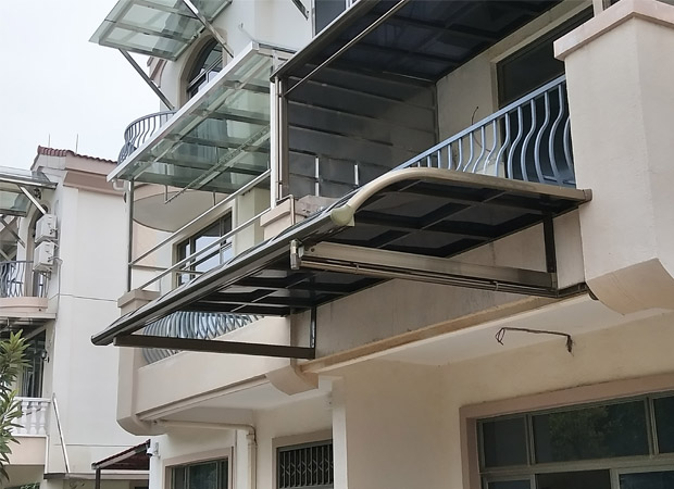 頂棚采用進口聚碳酸酯板,抗沖擊是玻璃的數百倍,有效防止高空墜物