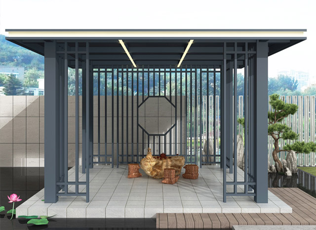 6、新中式鋁合涼亭防火阻燃,徹底解決木質(zhì)類產(chǎn)品容易燃燒,存在安全隱患的難題。