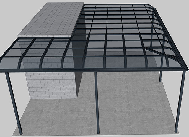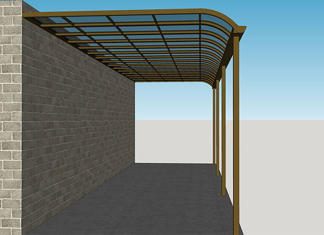 頂棚采用進(jìn)口聚碳酸酯板,抗沖擊是玻璃的數(shù)百倍,有效防止高空墜物