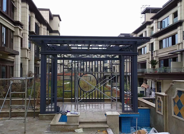7、新中式鋁合涼亭顏色豐富,可供選擇的顏色眾多。既具有天然木質(zhì)感和木質(zhì)紋理,又可以根據(jù)自己的個(gè)性來定制需要的顏色。