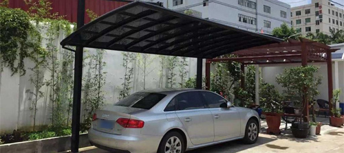 骨架材質:鈦鋁合金 頂棚材質:聚碳酸酯板 面積計算:按頂棚展開面 型材壁厚:1mm-4mm 板材厚度:2mm和3mm 尺寸:可定制 型材工藝:噴涂、電泳、轉印 框架顏色:白色、灰色、咖啡色、香檳色、木紋色 板材顏色:透明、茶色、淺灰色、深灰色、藍色 適用范圍:企業(yè)工廠、政府單位、別墅小區(qū) 款式選擇:單邊式車棚、合抱式車棚、斜拉式車棚、歐式S型車棚