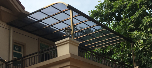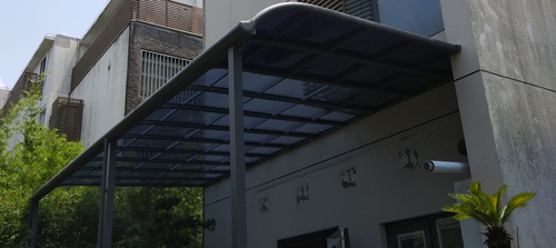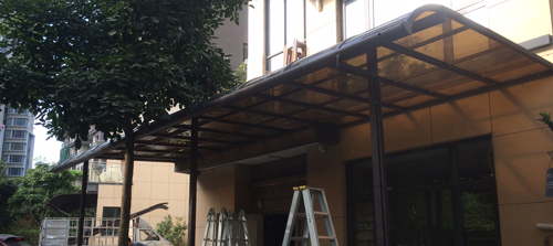 頂棚采用進口聚碳酸酯板,抗沖擊是玻璃的數(shù)百倍,有效防止高空墜物
