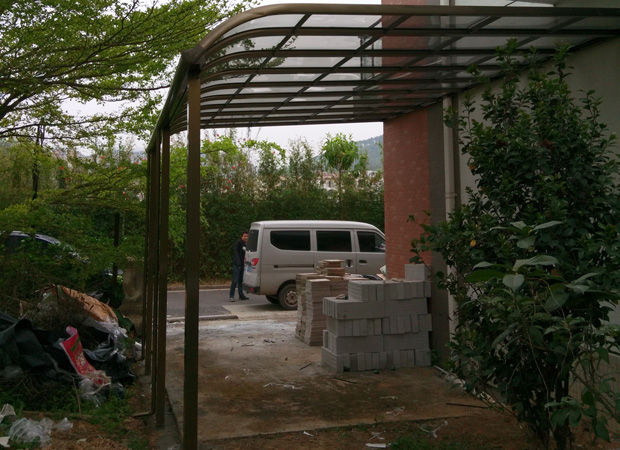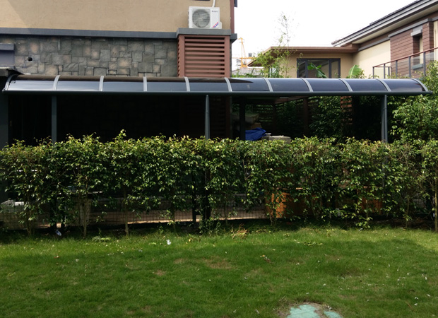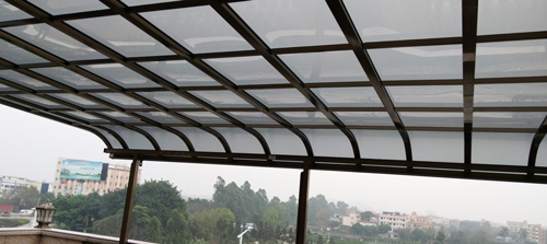 頂棚采用進(jìn)口聚碳酸酯板,抗沖擊是玻璃的數(shù)百倍,有效防止高空墜物